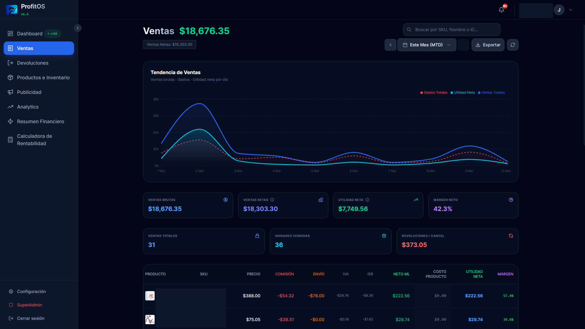 Hoy sé exactamente qué productos valen la pena y cuáles no, y veo mi utilidad real del día en vivo. ProfitOS lo hice para mi propio negocio — ahora lo comparto.